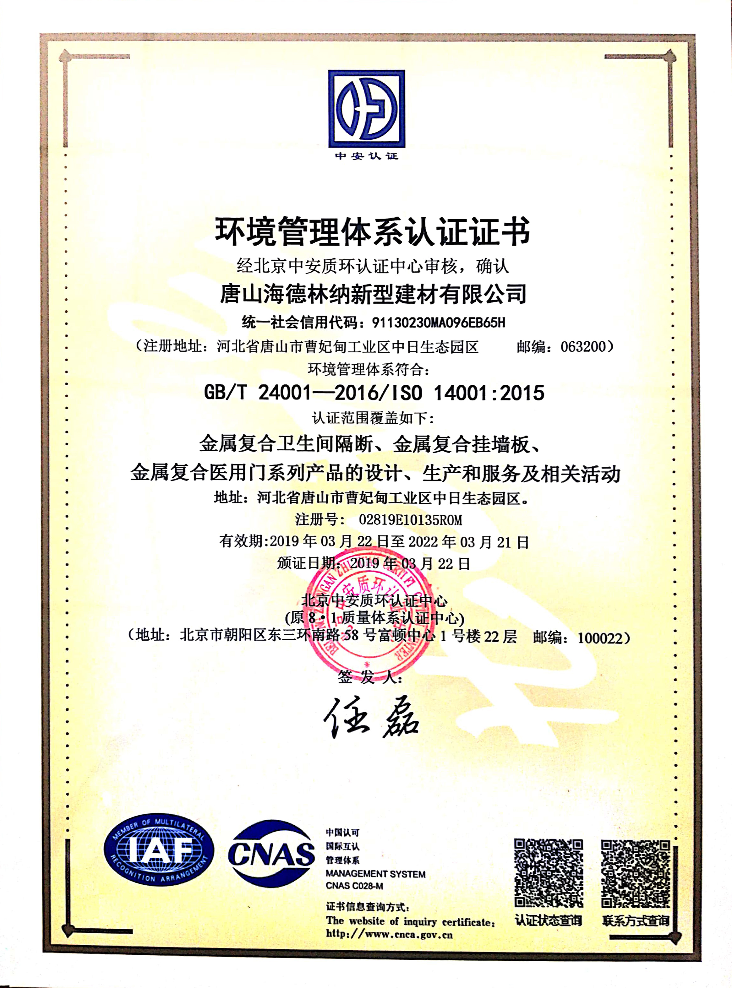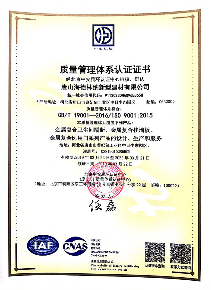 質量管理體系認證證書